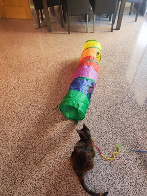 The foldable cat tunnel brings fun and exercise, enriching your pet's life with playful exploration and engaging activities.